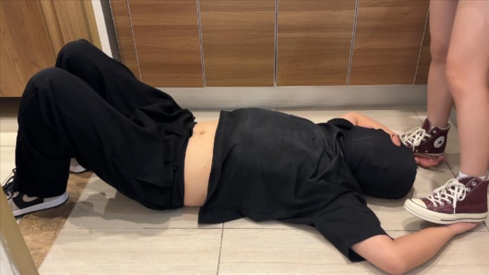 高跟光腿膝盖顶裆顶腹加关节技虐待男M