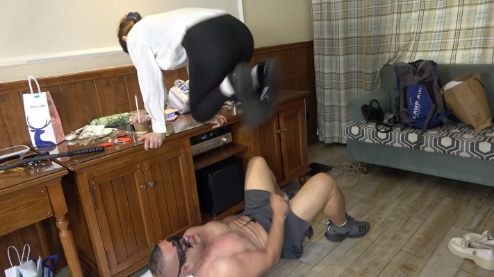 高跟光腿膝盖顶裆顶腹加关节技虐待男M