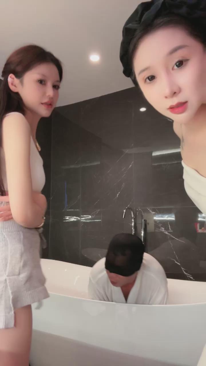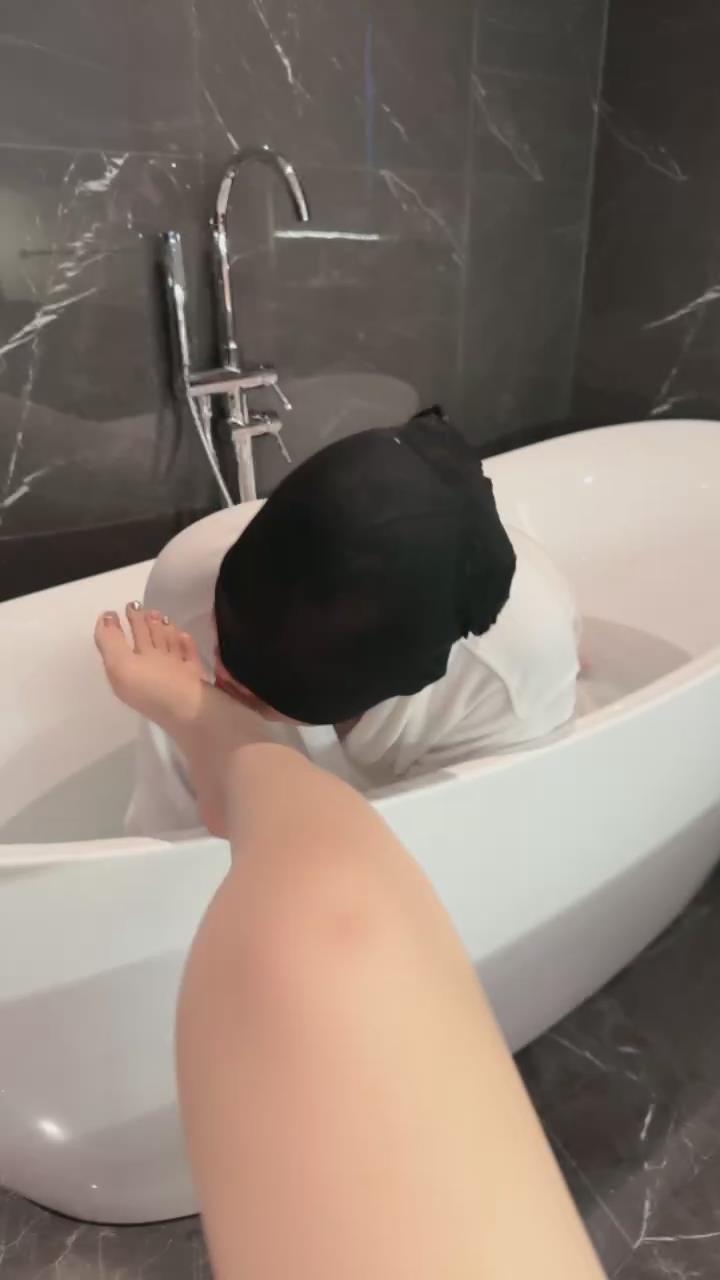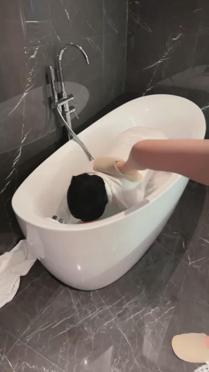 【泡芙S】带素人朋友一起把贱狗的头泡在浴缸里感受窒息