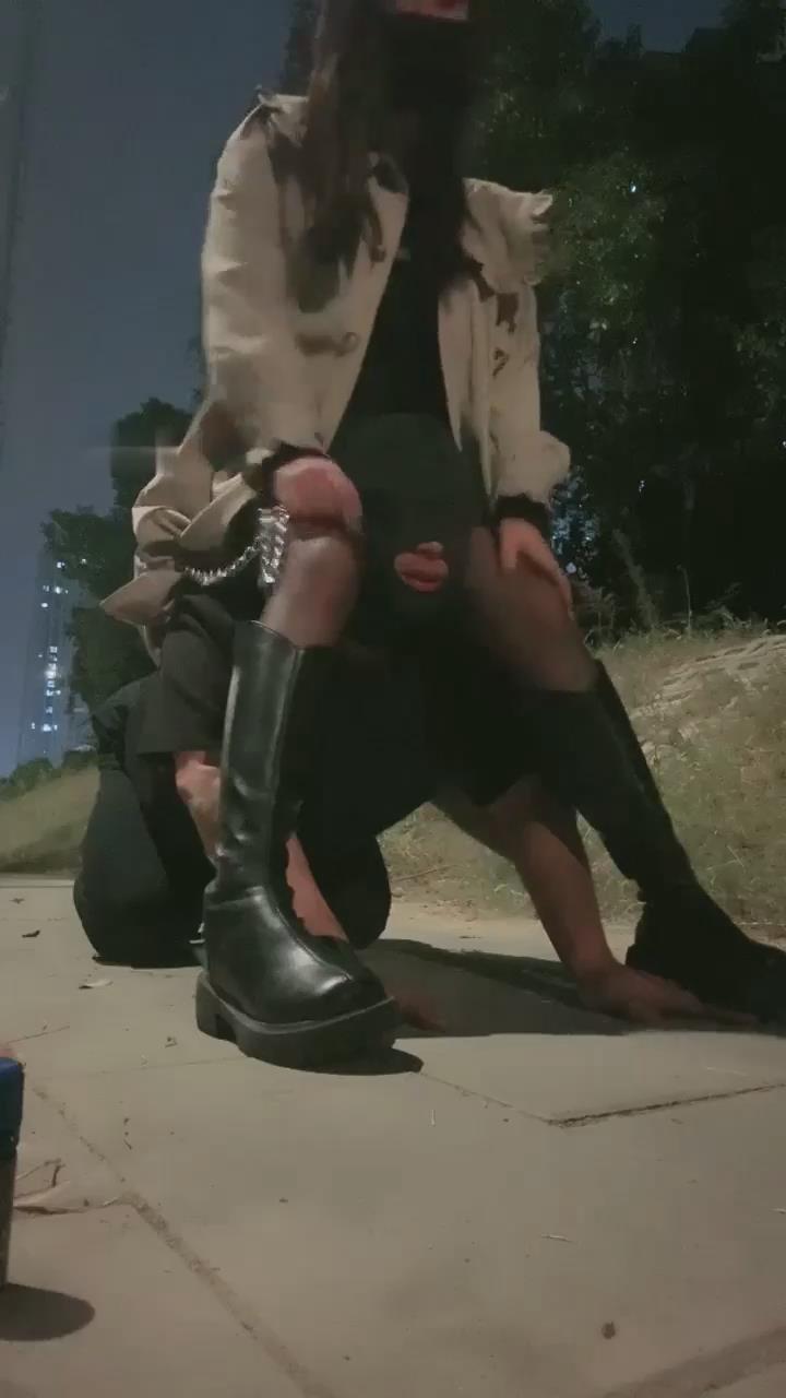 【桃子老师】户外圣水钻胯遛狗舔鞋底脚踩食物清理鞋底喝圣水当马桶