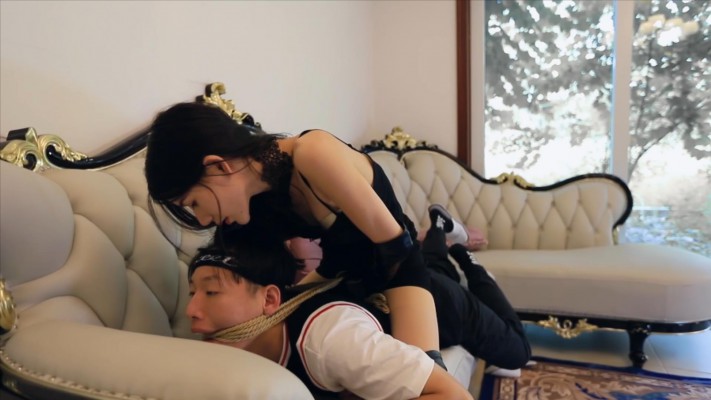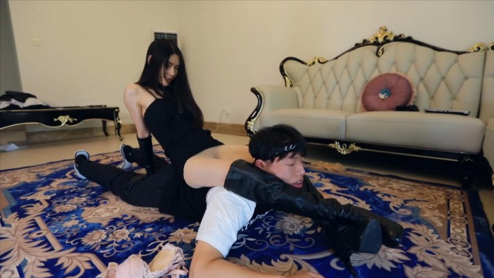 偷内衣贼被芷晴抓住,按在地上用剪刀腿锁住脖子窒息。 接着芷晴骑在盗贼背上,将他的头使劲往后拽,用绳子往后勒住嘴巴和脖子。 盗贼努力想解开绳子却依旧徒劳,直到最后无力挣扎,最终活生生在芷晴胯下窒息而亡。