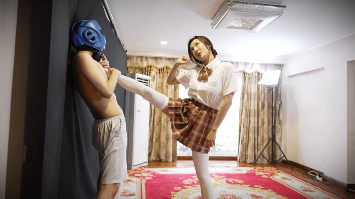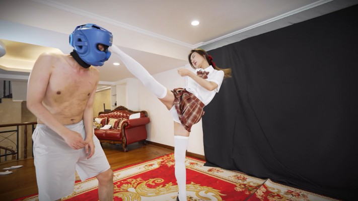 影姬教训一个专门欺负女生的猥琐教练。先是装作来学女子防身术,将计就计和教练实战。 找准机会连续踢把教练踢翻,并施展各种高踢绝技,把教练踢得在地上滚着求饶。
