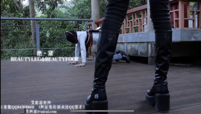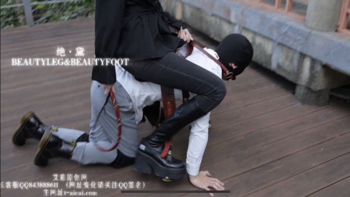 精彩的户外露出来啦!!! 有没有想象过自己在公园的凉亭里变成艾琳女神胯下的一匹马?旁边的马路上不时地会有路人经过,他们可是一扭头就会看见你下贱的被女神当成马骑的奇怪姿势哦!可是越是这样,越感觉到羞耻和刺激吧。毕竟在公园里时刻冒着露出被发现的危险,也要给艾琳女神闻脚舔脚舔女神走过路的脏靴子底(都有特写片段,45度m视角让你身临其境) 首先艾琳女神先在台阶上展示她的超长美腿,贱奴在下面乞求的舔着艾琳女神的脏靴子,看m这么起劲,艾琳命令m脱下靴子闻棉袜和臭脚 这彻底激发了贱奴的奴性,戴上马鞍跨在贱奴身上,让