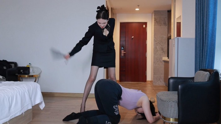 高跟光腿膝盖顶裆顶腹加关节技虐待男M