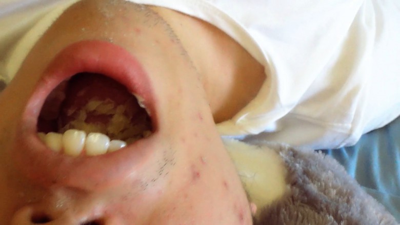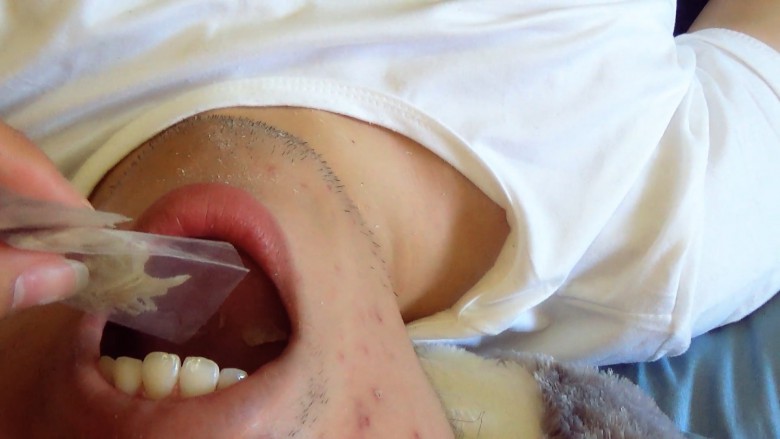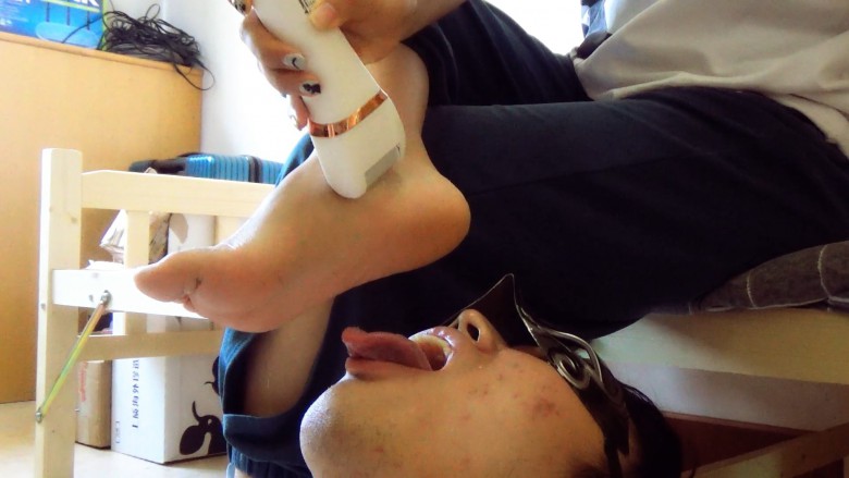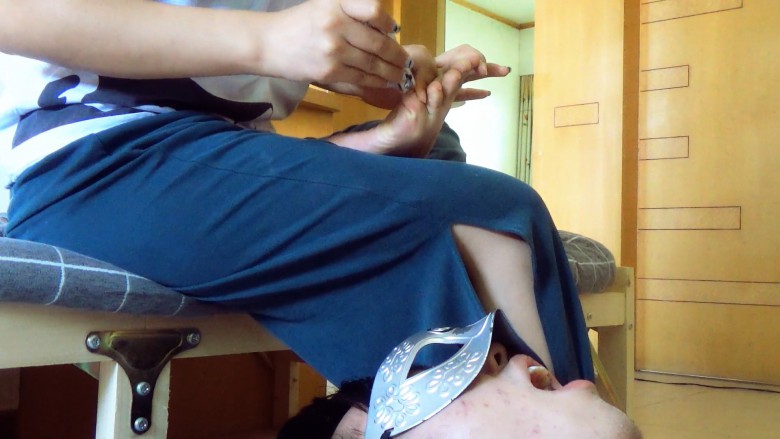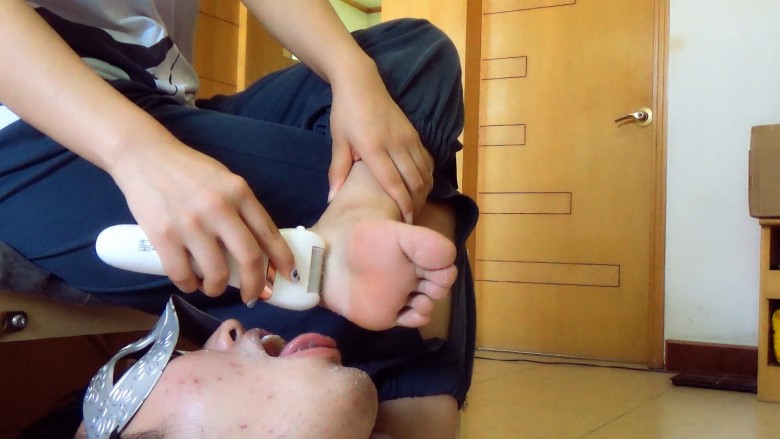 小m先用温水给女王洗脚,被女王踩着头强迫把洗脚水喝完。喝完女王踩着小m的脸让小m把脚底舔干净以后开始用磨脚器清理脚底的死皮。小m在女王脚下张大嘴接着磨下来的脚皮,脚皮屑就像雪花一样飞到小m的嘴里和脸上,就像给小m的脸抹上了一层粉。女王看了看脚觉得脚趾甲长了就顺便把脚趾甲剪了,剪下的脚趾甲和指甲缝里的脚泥也都喂给小m吃。最后小莜女王把这两周撕的攒起来的脚皮一次性倒进小m的嘴里让他吃光,量非常多,一点都不许浪费全都要咽下去。