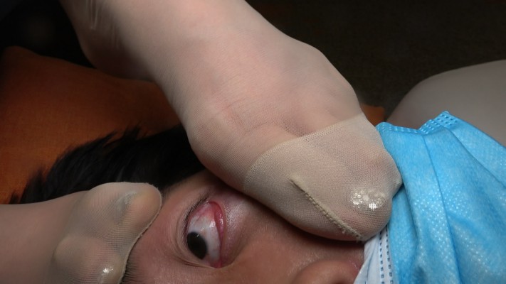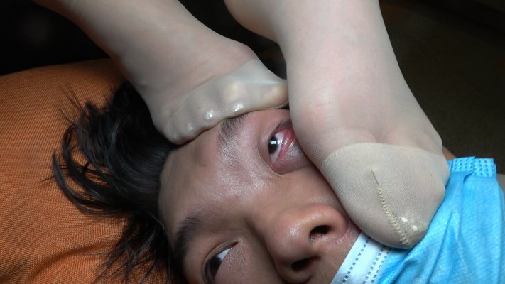 公司同事经常偷看丝袜脚,被领主老大发现后肉丝脚残忍虐待眼睛,暴力碾压眼球,脚尖划眼球,惨不忍睹。
