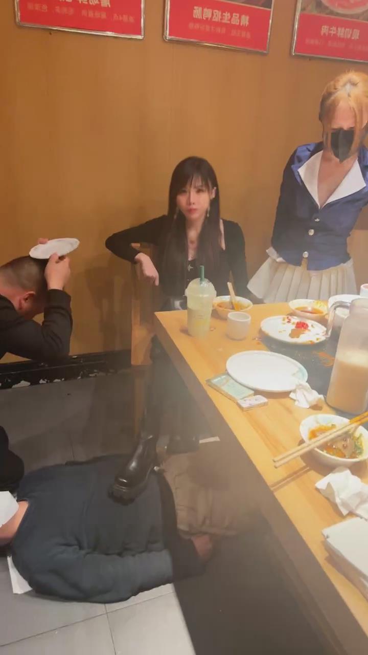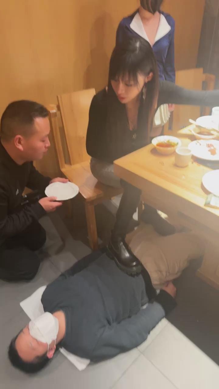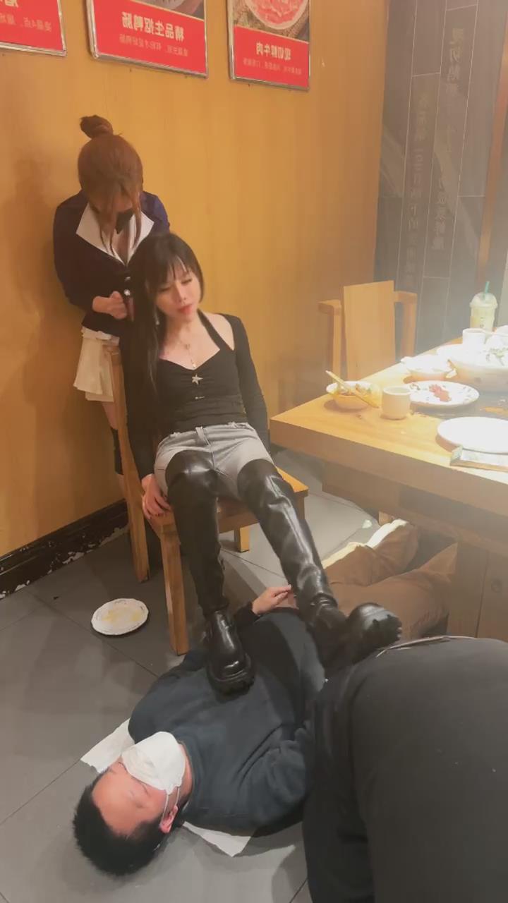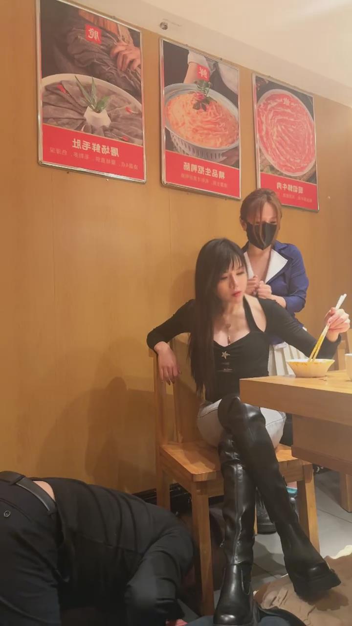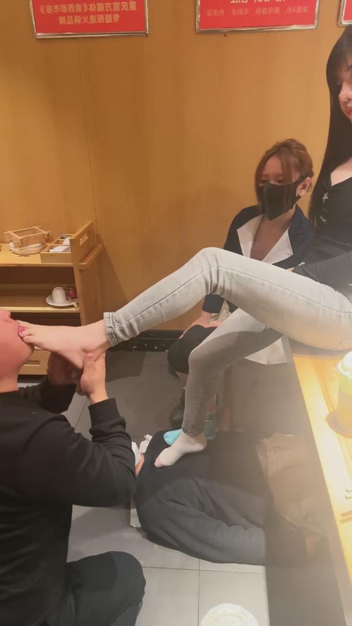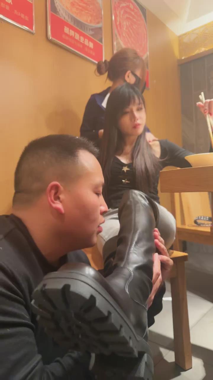 【伊晨】包房玩狗舔脏靴底狗喂食裸足互舔