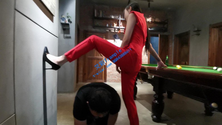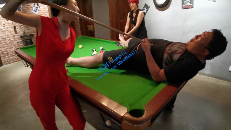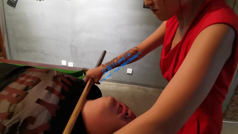 酒蒙子猪奴和朋友去打台球,说台球岸子太破这时当地大姐大红姐(冷依饰演)出来后,酒蒙子朋友见是红姐当场吓跑,红姐把在场玩的都撵走啦留下猪奴,猪奴一看是红姐的场子立马就跪地求饶,红姐一顿高跟踢踹,暴力耳光,舔脏鞋底,吃浓痰,后来让猪奴交钱,猪奴没有红姐又让猪奴给她姐妹(梦溪饰演)舔鞋,闻臭脚,最后让猪奴上台球岸子上两姐妹用台球打猪奴**猪奴痛苦表情可见二姐妹的狠毒,后来让猪奴跪着把啤酒都倒猪奴头上,警告猪奴以后看一次打一次。