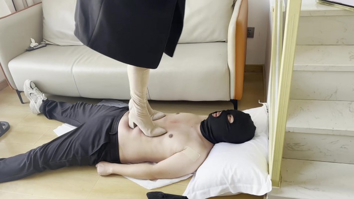本片主要以高跟踩踏为主,最后梦窃女王看贱狗很乖,奖励了舔鞋底,还穿上了贱狗最爱的长靴给贱狗按摩。