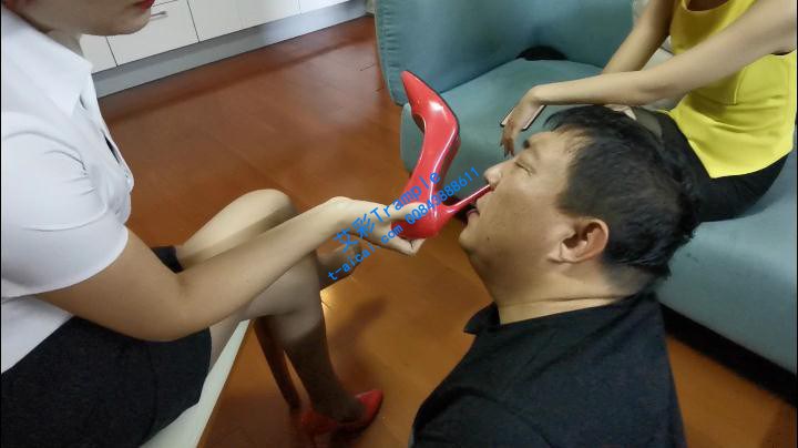 公司下属为升职给局长送礼,结果局长夫人(梦溪)和小姨子(冷依)在家,进屋后局长夫人说想升职没问题,要是今天让我们姐妹玩的开心了,就可以给你升职,命令舔脏鞋底,往嘴里吐痰钻跨,这时冷依女王把鞋一脱满屋臭味让职员闻,熏得职员直躲,然后冷依女王说不想闻就滚,这时职员抱着冷依女王的臭脚恭维的说香,给姐妹逗的很开心,后来臭脚深喉,强迫圣水。