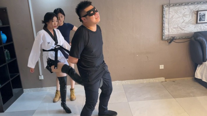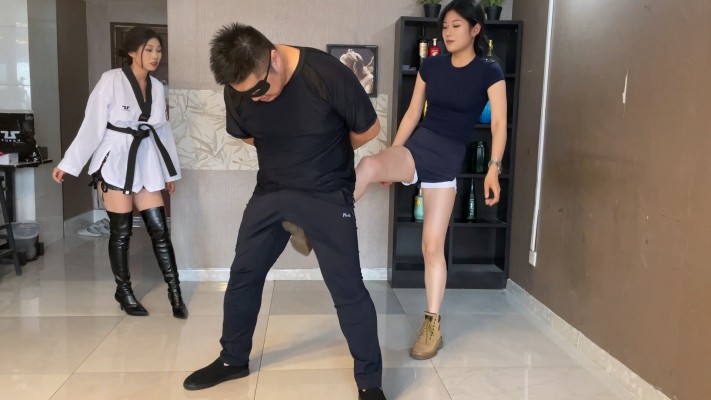 长腿美女脚力雅楠指导新人学员雨婷如何踢费色狼,让雨婷换上了自己的跆拳道道服扎上黑带,穿上锋利的高筒尖头皮靴,把被抓来用于真实踢击的猥琐男当成实战对象,进行重度踢击,指导过程中雨婷吸收领会的很快,最终教学完毕后男子也废了。。