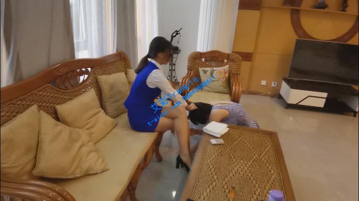 原配空姐回家中发现小三躺在自己和老公的床上拽着小三头发连踢再打的把小三拽下楼,给小三一顿耳光,踢踹小三毫无还手之力,被原配踩在脚下蹂躏,原配往小三脸上吐痰然后用鞋底踩撵小三脸明显变形,后来小三给原配舔鞋舔脚,捶腿磕头道歉可见原配的狠毒和对小三的憎恨。