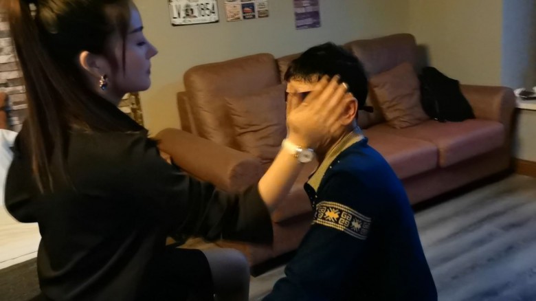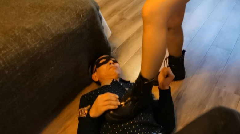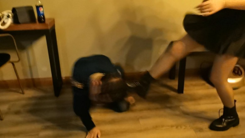 一部标准的仙儿式暴力,这次换了个承受力偏弱的M,打几下就认怂,抱着仙儿的腿求饶,最后甚至还装死,被发现以后迎接而来的就是铺天盖地的狠踹。