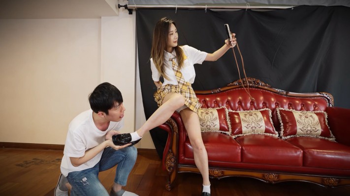 影姬想请小哥哥助演拍摄一段女生格斗战胜男生的视频,小哥哥嫌丢人拒绝。 于是影姬直接对他开踢,踩着脖子羞辱,连续不停地高抬腿踢头,瘦弱的小哥哥多次被暴击, 脑中只有嗡嗡的声响,要不是戴着头套就直接脑震荡了。 之后小哥哥彻底臣服了,影姬逼迫以羞辱他的姿势进行自拍与摆拍。