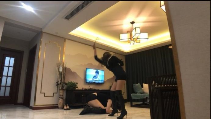 母狗因没有吃完主人踩踏过的狗食,在熟睡中被妆主大大一盆凉水泼醒。紧接着就是一顿狂扇耳光,主人穿着高贵的长靴不停的踢踩踹向母狗的身体,任凭母狗哭喊求饶也无济于事,直到母狗留出血来妆主才暂且饶她一条狗命。。。。
