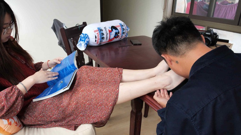 在家里看书被舔脚,踩脸,各种特写,语音对话。