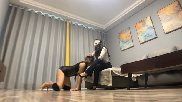 见主人回家,骚母狗立马爬到跟前伺候。主人却嫌母狗动作慢偷懒,上来就揪住耳朵给了她两耳光,母狗冲主人摇摇尾巴,乞求主人饶恕。女王见状一边用鞋尖挑着母狗的下巴,一边羞辱着母狗。一番羞辱过后,主人终于决定玩弄赏赐一下这骚母狗。